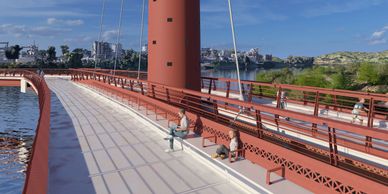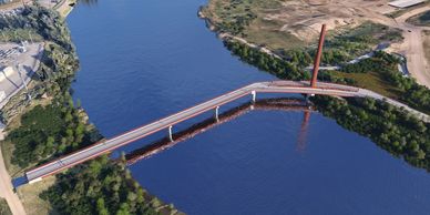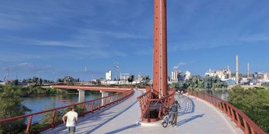 The east landing of the bridge will feature a welcoming, park-like gathering space with community amenities and areas for rest and reflection. On the west side, a striking tower and lookout point will offer sweeping views of the Cedar River and downtown skyline. At 18 feet wide, the bridge provides generous space for bicyclists, runners, walkers, and families to safely share the trail.